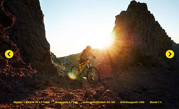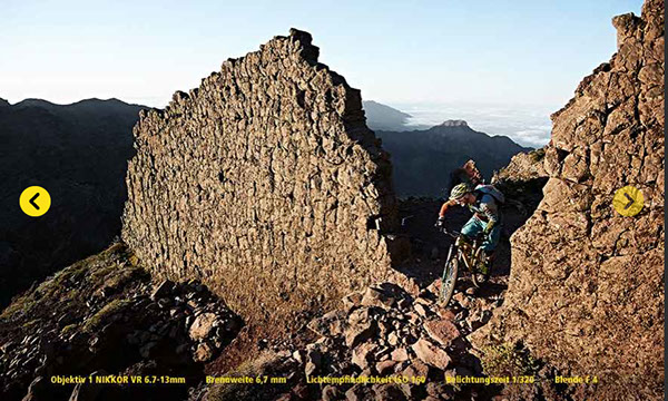 Organizing a shoot to promote the new Nikon A1 camera to show off all its features by using different riding situations. As well as modelling himself, arranging accommodation, food, locations, transportg and rent payed by the tourism office for the whole production team on La Palma, Canary Islands.
